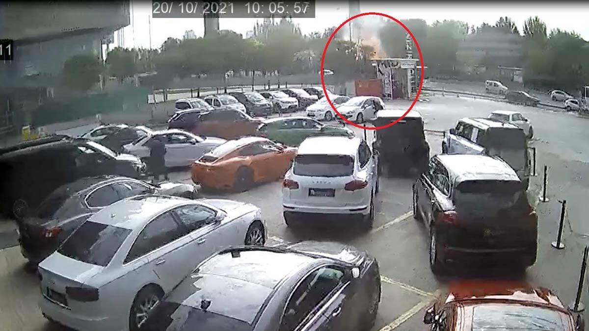 Öte yandan meydana gelen patlama çevredeki iş yerinin güvenlik kamerasına ve cep telefonlarına yansıdı. Güvenlik kamerası görüntüsünde, ilk patlama ile birlikte alevlerin yükseldiği, çevreye parçaların savrulduğu görüldü. İkinci patlama da ise bazı vatandaşların korkuyla çevreye kaçtıkları yer aldı.