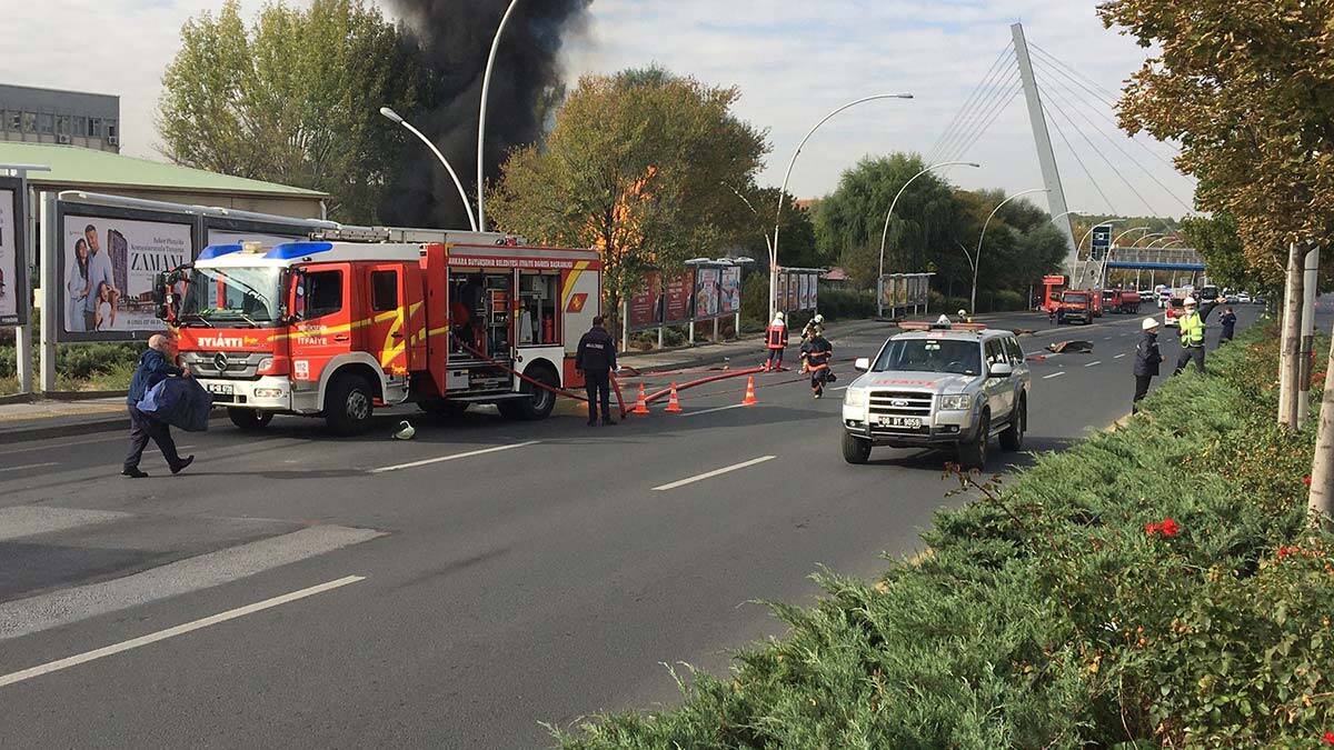 İhbar üzerine bölgeye itfaiye ve sağlık ekipleri sevk edildi. Ekipler, alevlere müdahale ederken, polis de çevrede güvenlik önlemi aldı. Eskişehir yolunun kenarındaki patlama nedeniyle ulaşım, kontrollü sağlandı. Yangını söndürme çalışmaları sürdürülüyor.