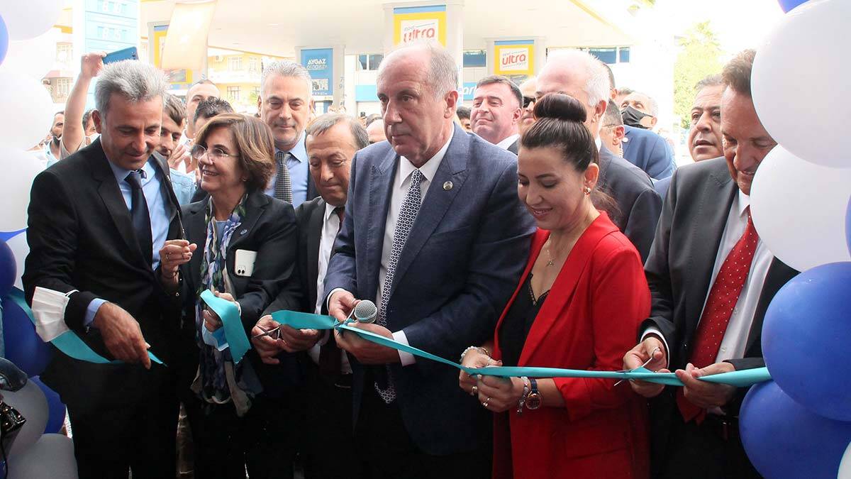 Açılışta Muharrem İnce, kafes içinde getirilen 2 güvercini partili kadınlarla uçurdu. Bir güvercinin uçmaması üzerine İnce, yerden alıp kafese koydu. İnce’ye, partisinin ilçe başkanı Ali Kurt, 8 köşeli kasket hediye etti. Kasketi takan İnce, davulculardan zeybek havası çalmasını istedi. Muharrem İnce, parti binası önünde zeybek oynadı.
