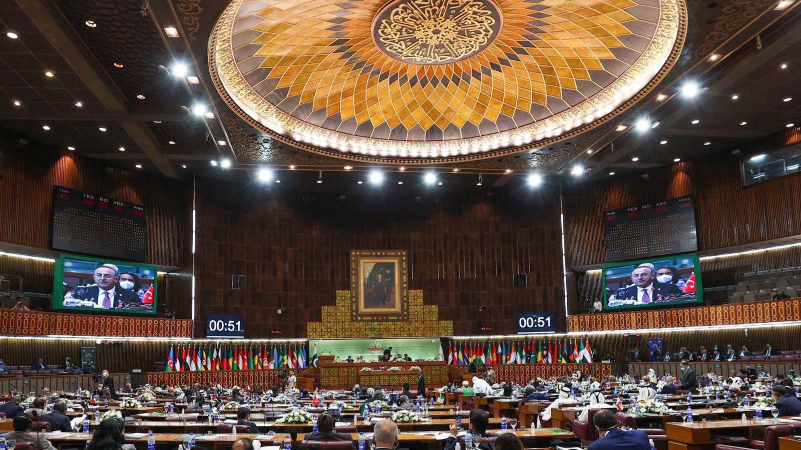 Peki geri kalanımız bu rahatsızlığı duyuyor muyuz? Türkiye ile anlaşmazlığınız var diye, Kıbrıs’taki Batı Trakya’daki Müslümanların haklarına sahip çıkmaktan geri durmak hakkaniyetli olur mu? Cemmu ve Keşmir’in statüsünü ve demografisini değiştirme girişimlerine göz yummak doğru mu? Uygur Türklerinin durumunu görmezlikten gelmek doğru mu? Müslüman devletler bu ülkelerle sorun yaşasın demiyoruz. Tam tersine, iyi ilişkilerimizi Müslüman toplumların durumlarını iyileştirmek için kullanalım diyoruz. İslam İşbirliği Teşkilatı olarak hepimizin ortak davası için var olduğumuzu biliyoruz. Vazifesi, İslam dünyasının bu davalarımızda ortak sesi olmak. Tekrar başa dönersem ümmet olarak tek vücut olursak karşımıza çıkan her engeli aşarız. Allah yar ve yardımcımız olsun” dedi.