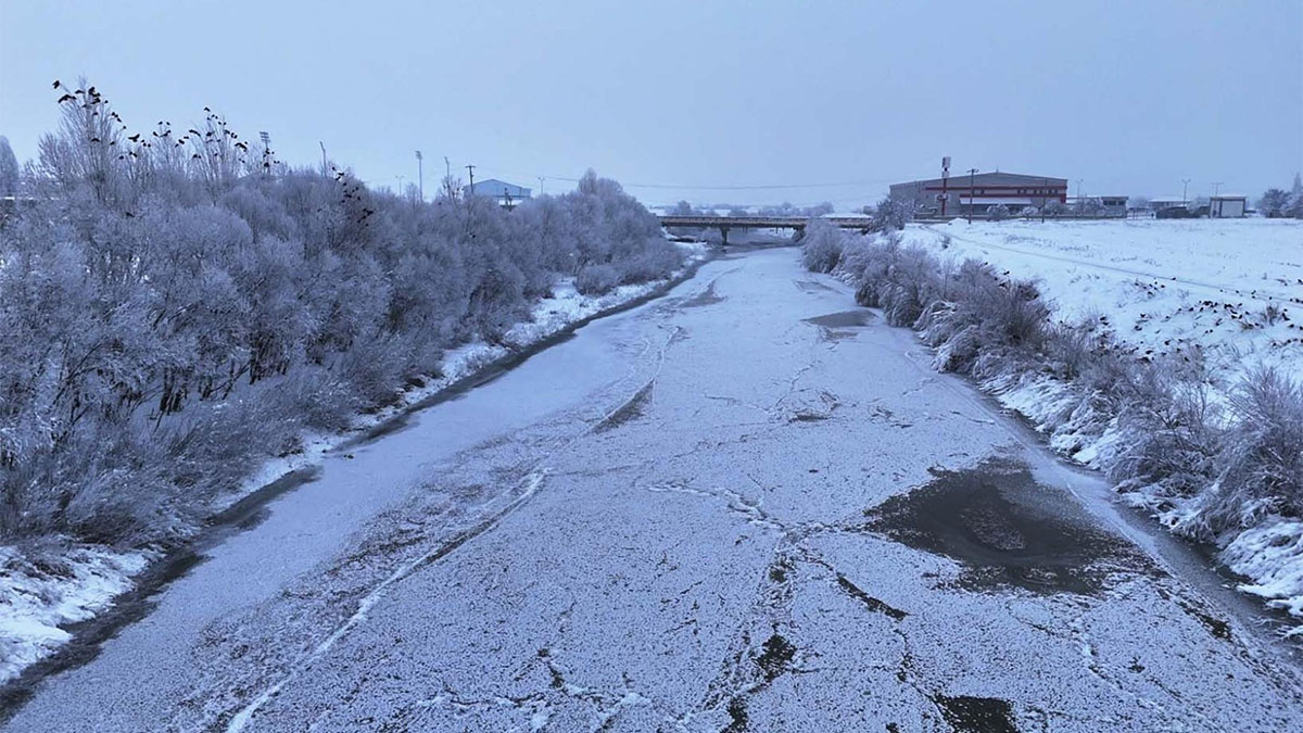 Muş’ta kar yağışı sonrası soğuk hava etkili oldu. Hava sıcaklığı eksi 18 dereceye düşerken, kentteki birçok dere ve gölet ile Karasu Nehri dondu.