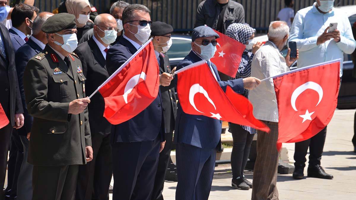 Burada konuşan Vali Okay Memiş, her yıl bu törenin yapıldığını 20 gün sonra da 23 Temmuz Erzurum Kongresi‘nin yıl dönümü törenlerinin gerçekleştirileceğini söyledi. Memiş, “Bunu anmak durumundayız. Bu tarihsel gerçekleri gençlerimize, yeni nesillerimize aktarmak bizim boynumuzun borcu. Sadece burada protokolle yaptığımız tören değil, anlamını da idrak ederek, yaşayarak hareket etmemiz lazım. Türkiye Cumhuriyeti Orta Doğu’ya sınır bir devlet. Güneyimizde devlet kalmadı neredeyse. Hala emperyalist güçlerin bu ülke üzerindeki ‘böl, parçala, yut’ politikaları devam ediyor. Bu ülkenin bölünmez bütünlüğü için mücadelemize devam ediyoruz” diye konuştu.