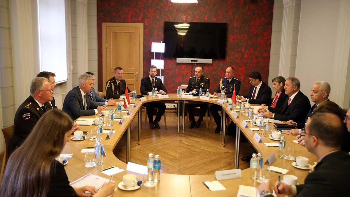 Milli Savunma Bakanı Hulusi Akar, resmi ziyaret kapsamında geldiği başkent Riga’da Kahramanlar Mezarlığı’nın ardından Letonya Savunma Bakanlığı’na geçti. Letonya Başbakan Yardımcısı ve Savunma Bakanı Artis Pabriks ile baş başa görüşen Akar daha sonra şeref defterini imzaladı. Heyetler arası görüşmelere başkanlık eden Akar ve Pabriks daha sonra ortak basın toplantısı düzenledi.