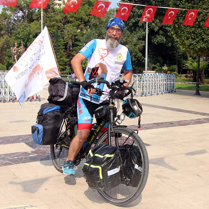 Adana’da 9 yıl önce oğlu Utku’yu (6) beyin tümörü nedeniyle kaybettikten sonra hayatını hasta çocukların tedavisine adayan gazeteci Kemal Yücel, nakil bekleyen çocuklar için bisikleti ile 7 bin kilometrelik umut yolculuğuna çıktı.