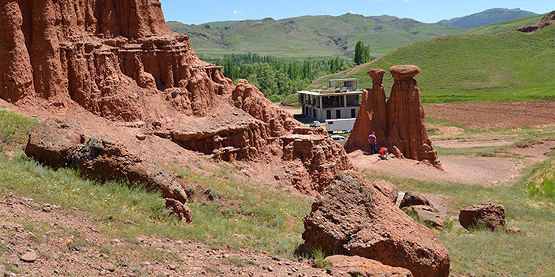 Narman ilçesinde yer alan ve ‘Kırmızı periler diyarı’ olarak bilinen peribacaları, bölgenin önemli doğal güzelliklerinden olma özelliği taşıyor. Çevre, Şehircilik ve İklim Değişikliği Bakanlığı Tabiat Varlıklarını Koruma Genel Müdürlüğü tarafından 20 Kasım 2019’da tescilli doğal koruma alanı olarak ilan edilen 2,5-3 milyon yıl yaşındaki peribacaları yerli ve yabancı turistlerin uğrak noktası haline geldi. Erzurum’a 100, ilçe merkezine 7 kilometre uzaklıktaki peribacalarına gelecek yerli ve yabancı turistlerin karşılanması için 2 katlı sosyal tesis yapıldı. Tesisin inşa edildiği yerin, sosyal dokuyu bozduğu gerekçesiyle peribacalarının UNESCO’nun Geçici Miras listesinden çıkarıldığı iddialarıyla ilgili İstanbul Üniversitesi Mühendislik Fakültesi Jeoloji Mühendisliği Bölümü Öğretim Üyesi Doç. Dr. Yıldırım Güngör, DHA muhabirine açıklamada bulundu.