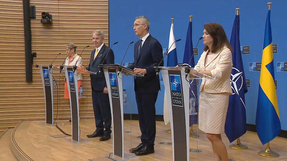 NATO Finlandiya ve İsveç’in katılım sürecini Finlandiya ve İsveç için Katılım Protokolleri ile NATO Karargahında başlattı. Jens Stoltenberg, Dışişleri Bakanları Linde ve Haavisto ortak basın toplantısı düzenledi.