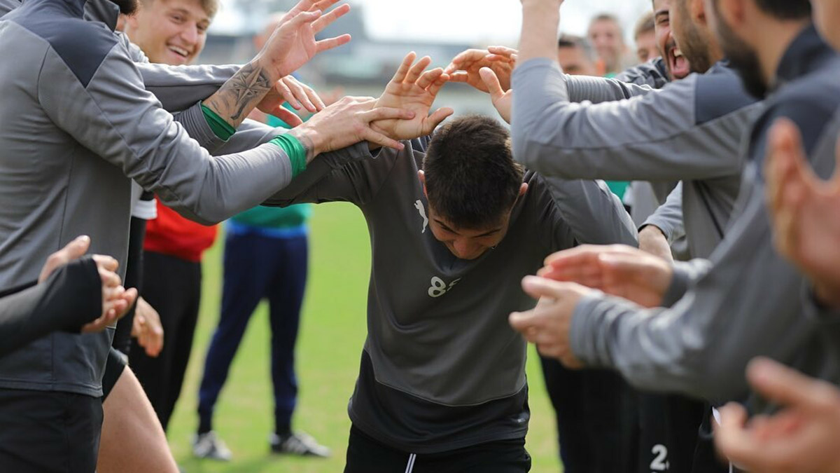 Siyah-beyazlı kulüpte geçen sezon profesyonel olarak bu yıl ilk yarıdaki performansıyla Süper Lig ekiplerini peşine takan 19 yaşındaki ofansif orta saha oyuncusu, Nazilli Belediyespor’da son antrenmanına çıktı. Bonservisi konusunda Başakşehir’le anlaşılan genç futbolcu, antrenmanda takım arkadaşlarına veda etti. Teknik direktör Mesut Toros ve oyuncular, Berkay’ı sırtına vurarak uğurladı.