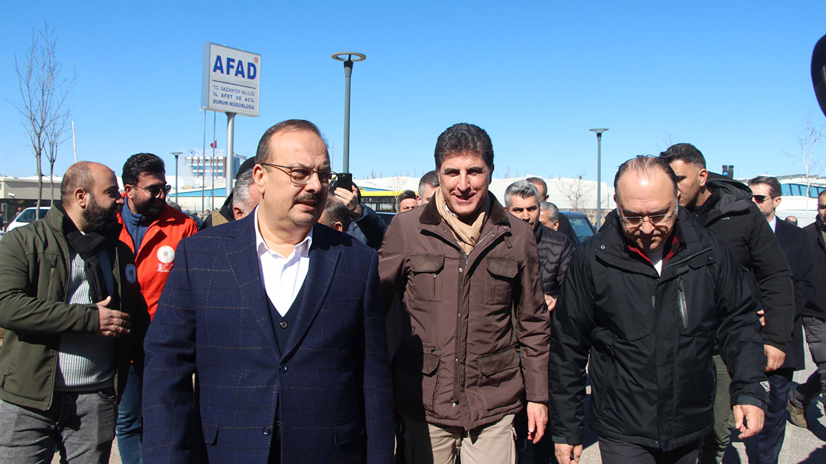 Gaziantep’te AFAD koordinasyon merkezine gelen Neçirvan Barzani, Bursa Valisi Yakup Canpolat tarafından karşılandı. Koordinasyon merkezini ziyaret eden Barzani, yetkililerden bilgi aldı.