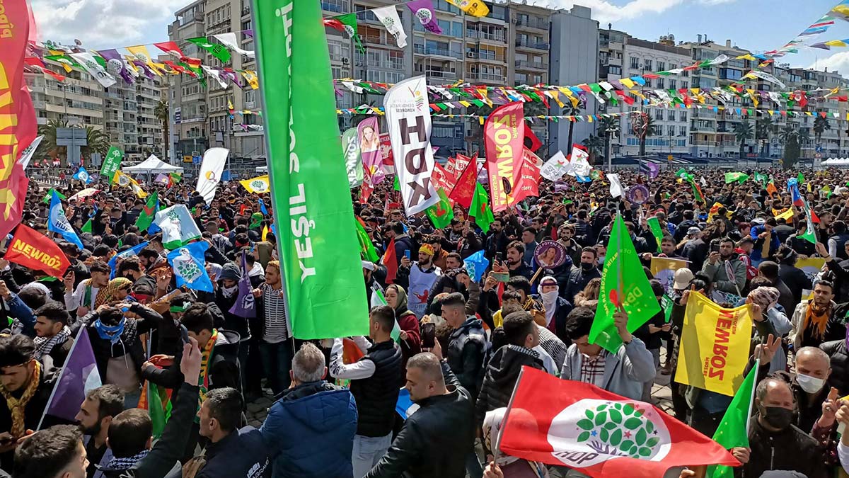 İzmir Emniyet Müdürlüğü Terörle Mücadele Şube Müdürlüğü ve İstihbarat Şube Müdürlüğü’nce koordineli yapılan çalışmalarda; pazar günü Gündoğdu Meydanı’nda düzenlenen nevruz etkinliğinde 59 şüphelinin, PKK/KCK terör örgütü elebaşı Abdullah Öcalan’ın posterini açarak, yasa dışı slogan atıp, örgütsel sözde marşlar söyleyerek, PKK/KCK/PYD/YPG terör örgütü propagandası yaptıkları tespit edildi.
