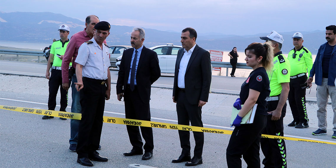 Burdur Valisi Türker Öksüz, nişan alışverişi dönüşünde meydana gelen ve 3 kişinin hayatını kaybettiği, 2 kişinin de yaralandığı kaza yerinde incelemelerde bulundu. İl Emniyet Müdürü ümit Bitirik ve İl Jandarma Komutan Vekili Albay Engin Hatipoğlu ile gazetecilere açıklama yapan Vali Türker Öksüz, “Burdur’dan Karamanlı yönüne giden bir aracın refüjü aşarak karşı yöne geçmesi sonucu maalesef 3 vatandaşımızın hayatını kaybettiği, 2 vatandaşımızın da yaralandığı trafik kazası meydana geldi. Hayatını kaybeden vatandaşlarımıza Allah’tan rahmet diliyorum. Yaralılarımıza da acil şifalar diliyorum. Üzücü bir durum” dedi.