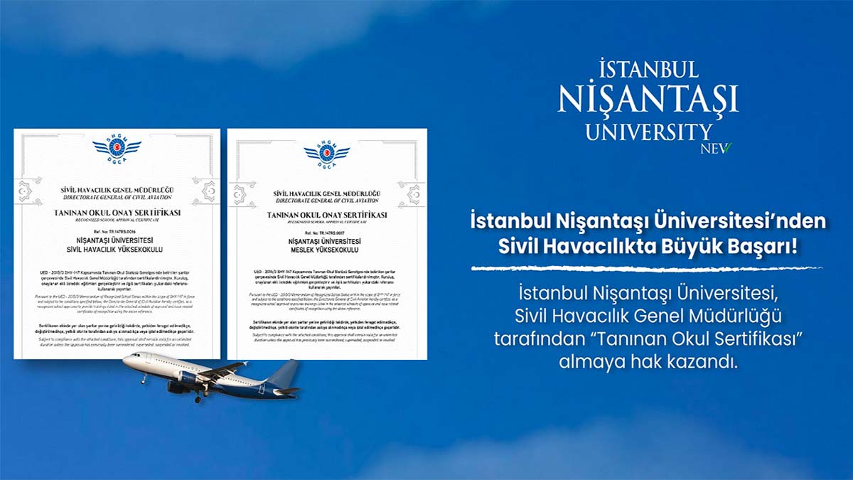 2021 – 2022 Akademik yılında Pilotaj ve Hava Trafik Kontrolü bölümlerinde Sivil Havacılık Genel Müdürlüğü tarafından “Yetkili Eğitim Organizasyonu” olarak ilan edilen İstanbul Nişantaşı Üniversitesi’ne bu yıl da havacılık teknik programlarında “Tanınan Okul Sertifikası” verildi.