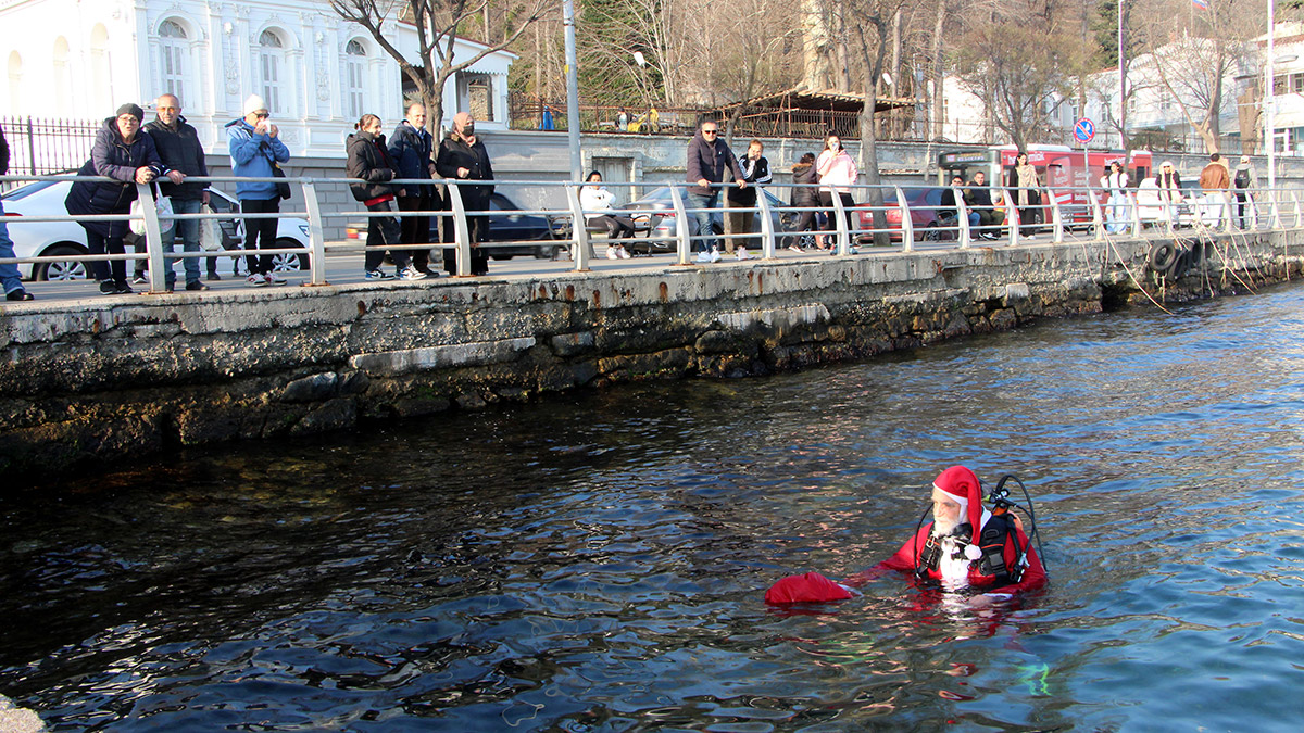 Noel Baba kılığındaki dalgıç Saruhan Singen gelecek kuşakların istavrit ve hamsi yemesi için denizlerimizi korumanın önemine dikkat çekerek “Görüyorsunuz plastik balıklar. Lütfen herkes sorumluluk sahibi olsun. Tüm balıkçılardan rica ediyoruz. Küçük balık avlamayalım. Yasal boy limitlerine dikkat edelim. 2023 senesi barışçıl, sağlıklı, hastalıksız temiz ve bol bol mavilikler tertemiz denizler içerisinde çok güzel balıklar olsun. Çocuklarımıza bu plastik balıklar kalmasın” dedi.