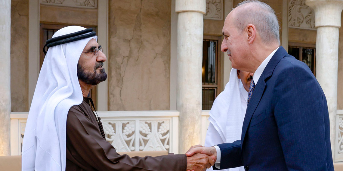 Türkiye Büyük Millet Meclis (TBMM) Başkanı Numan Kurtulmuş BAE Devlet Başkanı Yardımcısı, Başbakan ve Dubai Emiri Şeyh Muhammed bin Raşid Al Mektum ile dün akşam bir araya geldi.