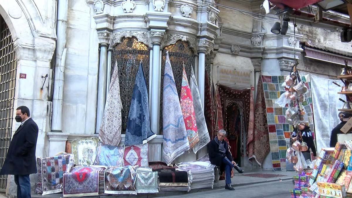 Fatih’te, Sultan I. Mahmut tarafından yaptırılan Nuruosmaniye Külliyesi sebilinin şebekeleri kilimlerle donatılmış durumda.