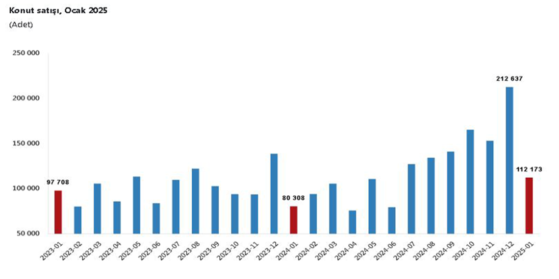 Türkiye İstatistik Kurumu (TÜİK), ocak ayı konut satış rakamlarını açıkladı. Buna göre konut satışlarının bir önceki yıla göre yüzde 39,7 artarak 112 bin 173 olduğu belirtildi.