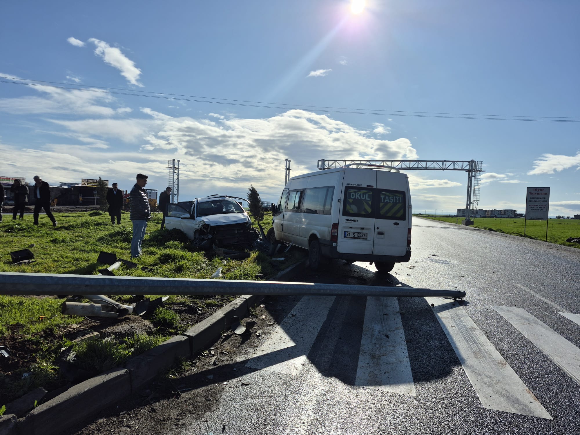 Kaza, sabah saatlerinde Diyarbakır Çevre Yolu kırsal Karamus Mahallesi yakınlarında meydana geldi. Sürücülerinin isimleri öğrenilemeyen 21 S 0537 plakalı öğrenci servis minibüsü ile 63 Aık 940 plakalı otomobil çarpıştı. Kazada araçlarda bulunan çoğu öğrenci 13 kişi yaralandı. İhbar üzerine bölgeye sağlık, jandarma ve polis ekipleri sevk edildi.