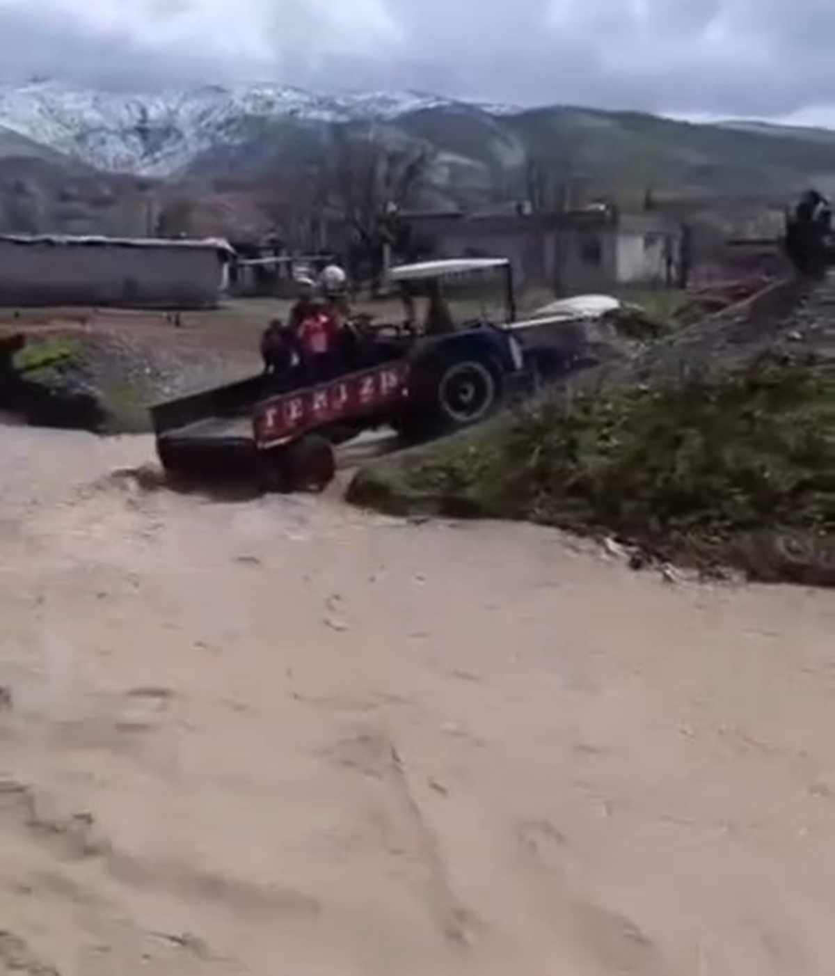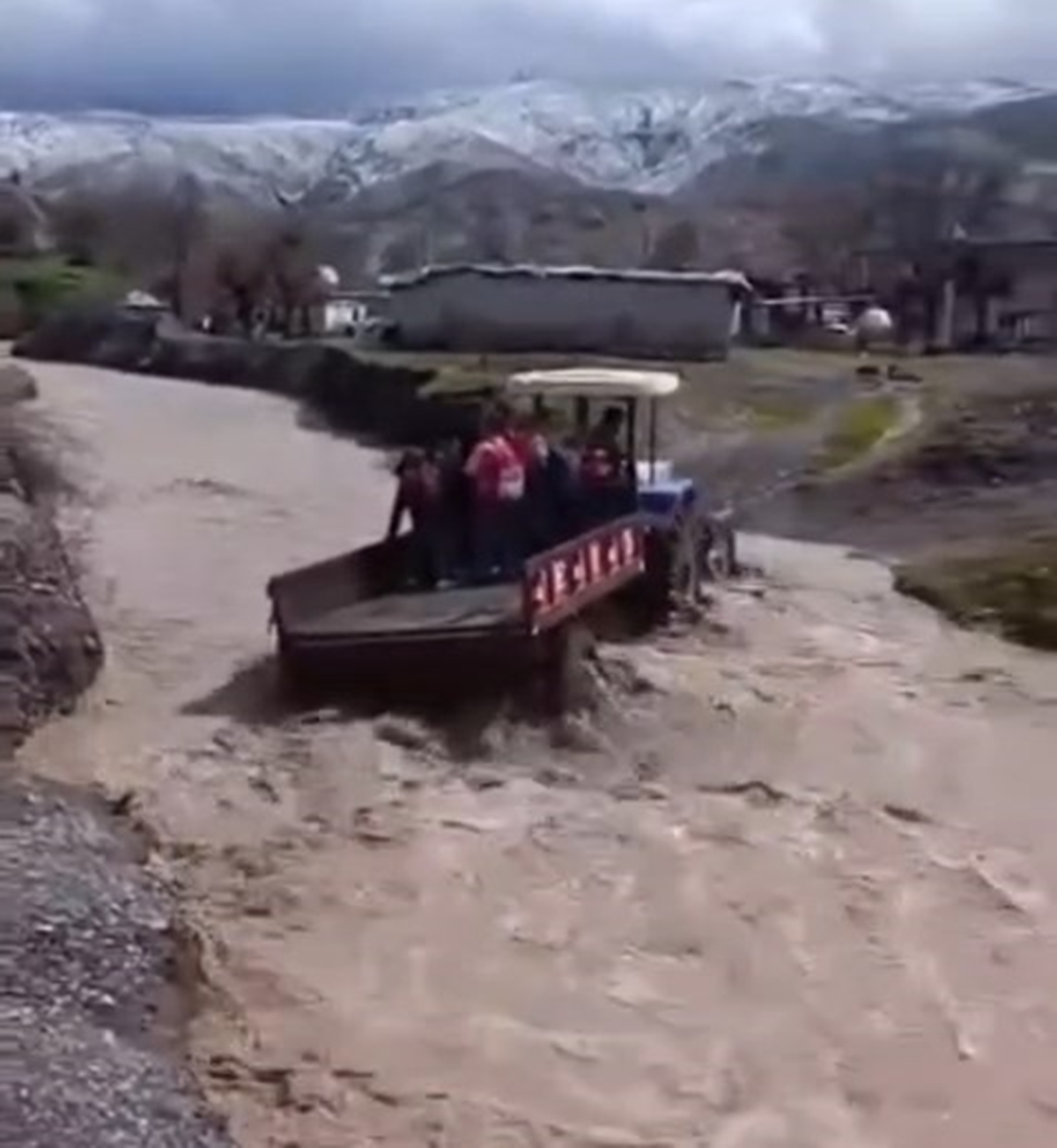 Silopi ilçesine bağlı Kumçatı beldesinde yağış sonrası debisi yükselen Besta Deresi'nden geçemeyen öğrenciler, bir köylünün traktörü ile karşı kıyıya taşındı. Öğrenciler, traktörün römorkuna binerek dereyi geçti. O anlar, cep telefonu kamerasına yansıdı.