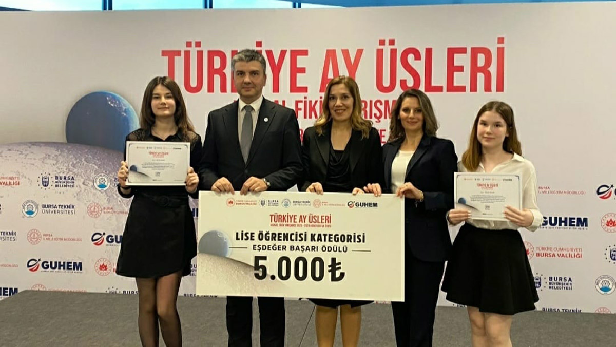 MBA Okulları lise öğrencileri Betül Çeven ile Melis Ceylan, Fizik Öğretmeni Gamze Sönmez ve Biyoloji Öğretmeni Semiha Soyer Çirkin’in danışmanlığında “Götür Beni Ay’a” isimli projeleriyle ödüle layık görüldüler. Düzenlenen ödül töreninde MBA Okulları öğrencilerine ödülleri Bursa Teknik Üniversitesi Rektörü Prof. Dr. Arif Karademir ve protokol üyeleri tarafından takdim edildi.