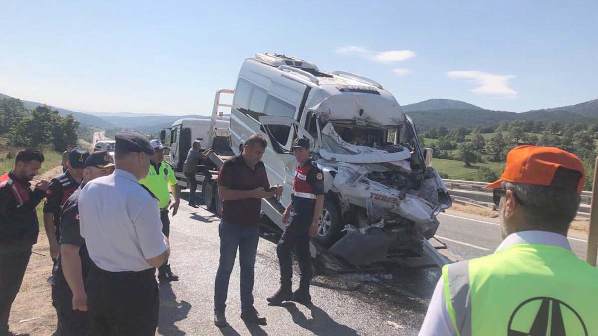 Bilecik’in Bozüyük ilçesinde, Kur’an kursunda eğitim gören öğrencilerin minibüsü TIR’a çarptı. Kazada 13 kişi yaralandı. Minibüs şoförü Evren Dinçer’in sağlık durumunun ağır olduğu öğrenildi.
