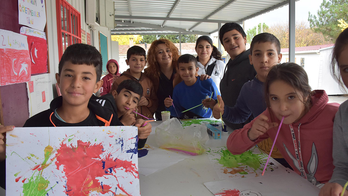 Buca ilçesinin kırsal Yıldızlar Mahallesi’nde, binası depremde hasar gördüğü için eğitime 2009 yılından beri konteynerde devam edilen Zeki Püskülcü İlk ve Ortaokulu’nda öğrenim gören 155 öğrenci, İl Milli Eğitim Müdürlüğü’nün Sanat Atölyesi Projesi kapsamında sanatçı öğretmenlerle bir araya geldi.