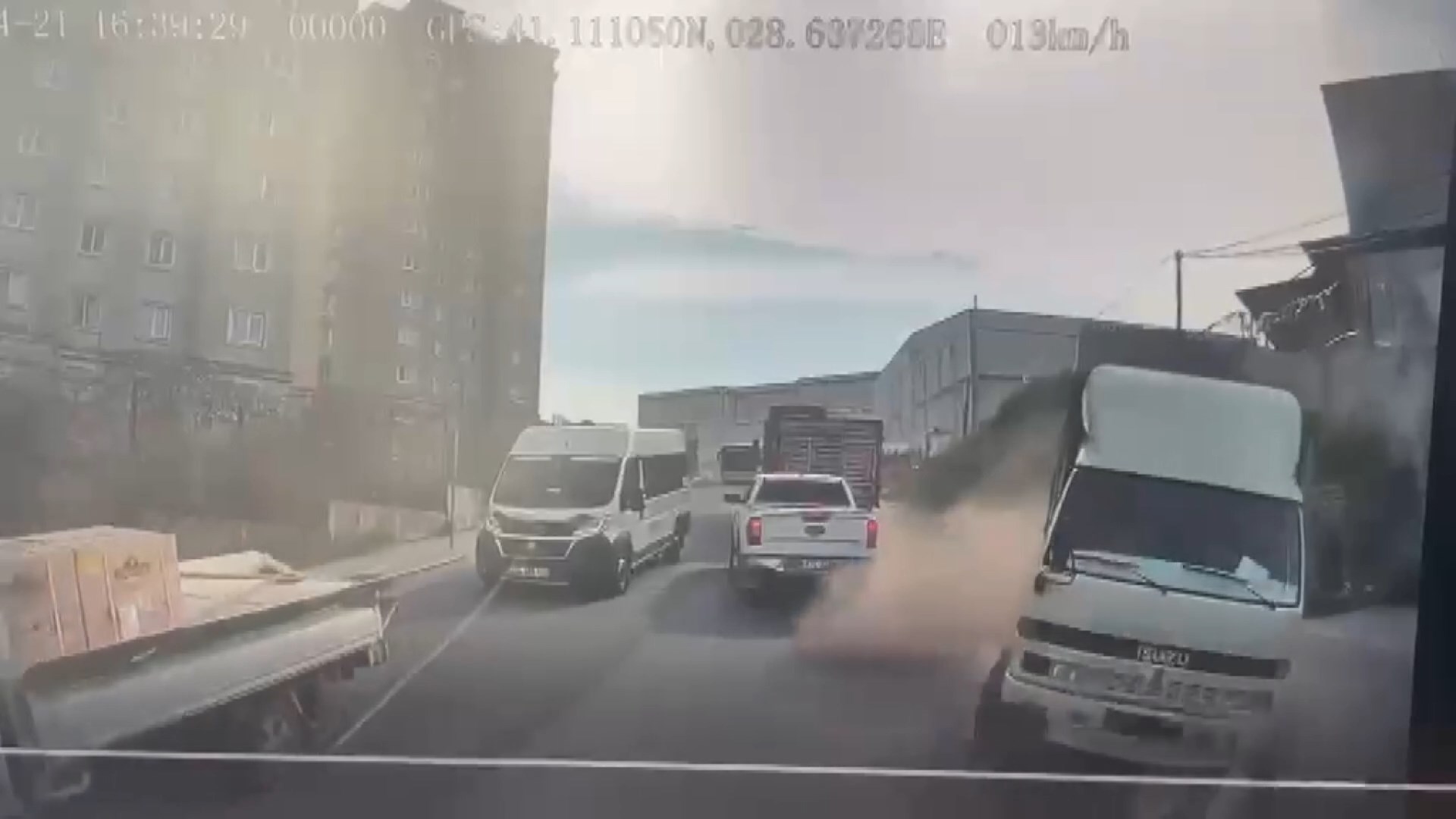 Kaza, 21 Nisan saat 16.40 sıralarında Ömerli Mahallesi’nde meydana geldi. İddiaya göre, şoförünün direksiyon hakimiyetini kaybetmesi üzerine karşı şeride geçen kamyonet, okul servisiyle kafa kafaya çarpıştı. Çarpmanın etkisiyle emniyet kemeri takılı olmadan uyuyan bir öğrenci koltuktan fırlayarak koridora düştü. Kazada ölen ya da yaralanan olmazken, olay anı okul servisinin araç içi kamerasına yansıdı.