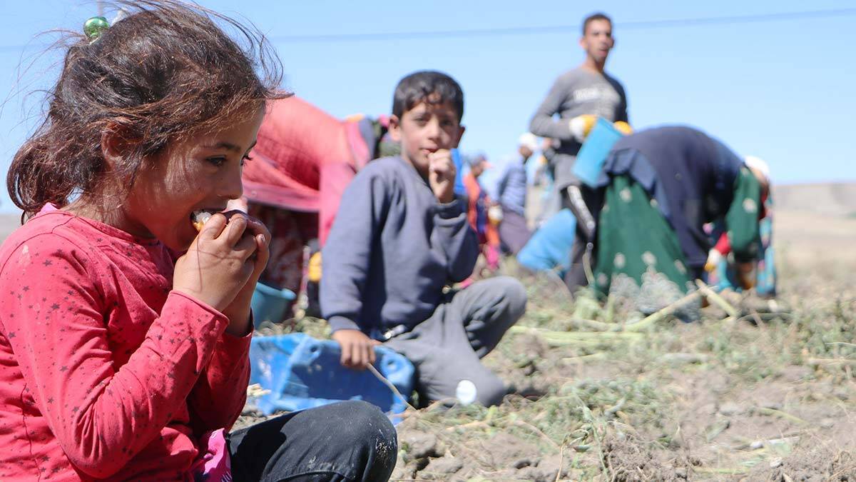 Tarım işçiliği yapan ailelerin çocukları okullar açılmasına rağmen patates tarlasında çalışıyor