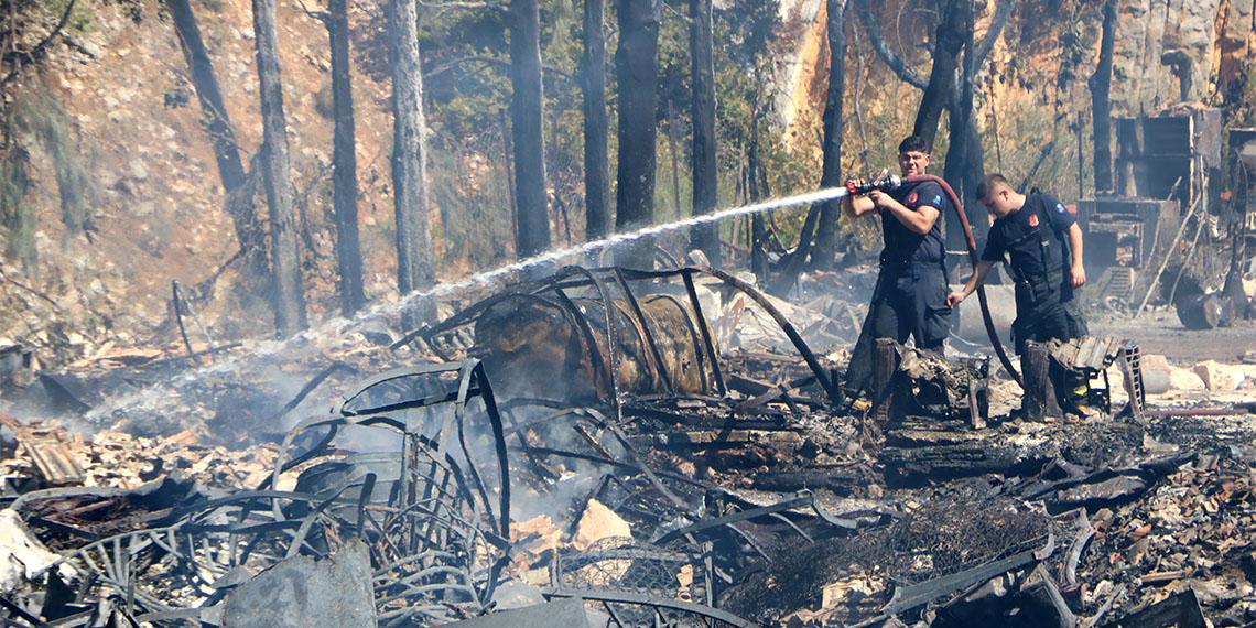 Antalya’nın ünlü tatil merkezi Olympos’taki ‘Kadir’in Ağaç Evleri’ adlı konaklama tesisinde dün gece çıkan yangın söndürüldü. Orman İşletme Müdürlüğü ekipleri, Büyükşehir Belediyesi İtfaiyesi ve Çıralı gönüllü itfaiyecilerinin müdahalesiyle yangının ormana ve çevredeki diğer tesislere sıçraması da engellendi. Yer yer soğutma çalışmalarının yapıldığı 5 dönümlük alanda, işletmeye ait kullanılabilir hiçbir nokta kalmadı. 17 yıl aradan sonra işletmesinde ikinci kez yangın felaketi yaşayan Kadir Kaya, “Vallahi diyecek bir şey yok. Kimsenin burnu kanamadı ona şükrediyoruz. Malımıza geldi, kimsenin canı yanmadı. Artık bu da takdiriilahi. Biraz kendimi toparlamam gerekiyor. Birinci yangından sonra dünyanın her tarafından insanlar geldi ve destek verdi, elleriyle, emekleriyle; o emeği koruyordum. Bu benim değildi artık o insanların emeğiydi, onu koruyordum. Ülkemde farklı bir misyon olarak dünyanın öbür uçlarında tanıtarak ve bu bölgede herkes ekmek yiyecek şekilde çalışmaya başladık ama kötü bir zamanda yine her şeyimiz gitti. Şükrediyoruz” diye konuştu.