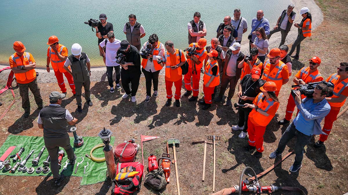 Yangın söndürme çalışmalarında, haber servisi yapan basın mensuplarına da olası durumlarda hem yangından korunma hem de müdahalenin nasıl yapılacağı 1 günlük eğitimle anlatıldı. Basın mensupları, üzerlerinde ‘gönüllü’ yazan kıyafetleri giydikten sonra arazözlerle ilgili bilgi aldı. Arazözlere binerek eğitim parkuruna giren basın mensupları, zorlu arazide arazözlerin nasıl ilerlediğini deneyimledi. Havuzdan su alan helikopteri de yakından inceleyen gazeteciler, eğitimi bitirdi.