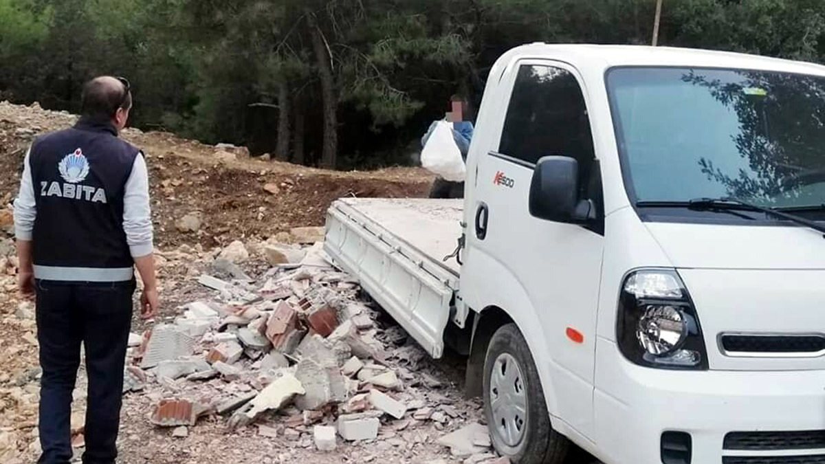 Muğla’nın Bodrum ilçesinde, ormana moloz döken 2 kişi, zabıta ekipleri tarafından suçüstü yakalanıp, haklarında yasal işlem başlatılmak üzere tutanak tutuldu. Döktükleri molozlar ise geri toplatıldı.