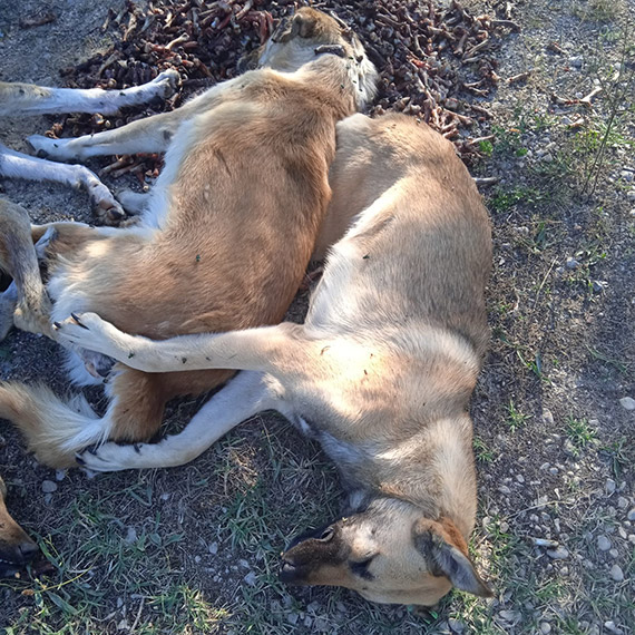 Bolu’nun Mengen ilçesindeki ormanda zehirlenerek ölmüş 6 köpek bulundu. Tavuk kemiklerinin yanında yan yana sıralanmış şekilde bulunan köpeklerin ölümüyle ilgili köylüler suç duyurusunda bulundu.