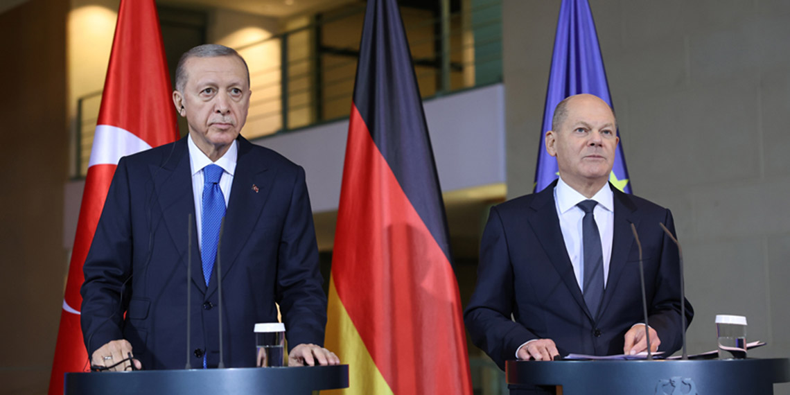 ‘Savunma sanayii iş birliğimizin engelsiz şekilde yürütülmesi, müşterek menfaatimizeydi’ ifadesini kullanan Cumhurbaşkanı Erdoğan, Türkiye ve Almanya’nın terörle mücadelede daha yakın iş birliği içinde olması gerektiğini söyledi.