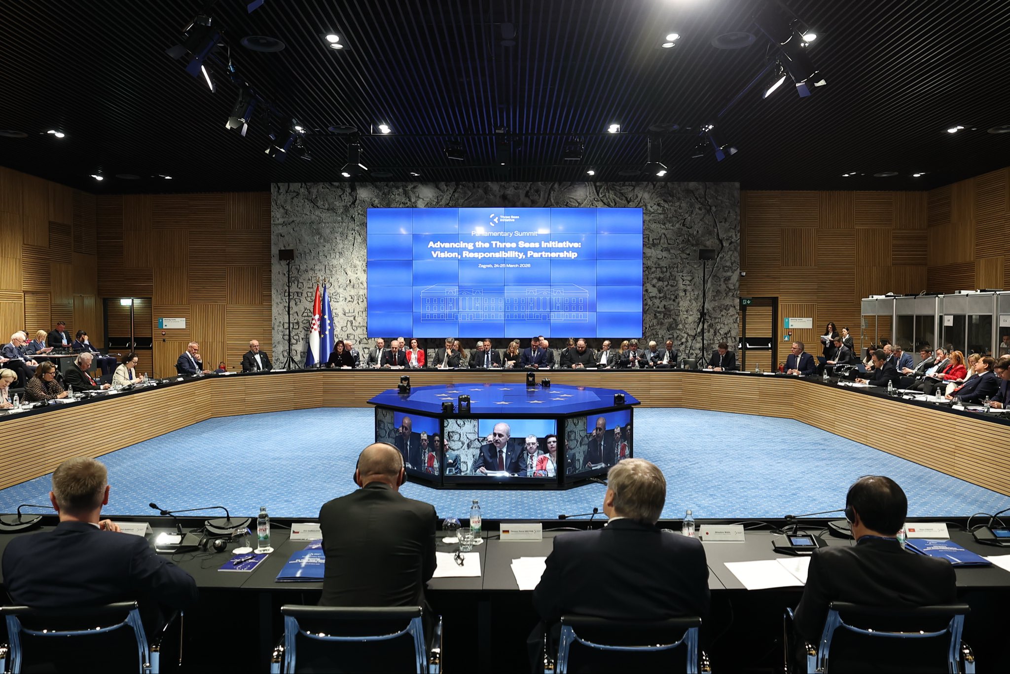 Türkiye Büyük Millet Meclisi (TBMM) Başkanı Numan Kurtulmuş, Hırvatistan Parlamentosu’nun ev sahipliğinde Zagreb Ulusal ve Üniversite Kütüphanesi’nde düzenlenen Üç Deniz Girişimi Parlamenter Zirvesi’nde yaptığı konuşmada, bu toplantının, Türkiye’nin ilk kez ‘stratejik ortak’ olarak katılım sağlaması bakımından kendileri açısından ayrı bir önem taşıdığını belirtti. Bağlantısallığın, Türkiye için temel önceliklerden birini teşkil ettiğine dikkat çeken Kurtulmuş, bu itibarla ulaştırma, enerji ve iletişim koridorlarının geliştirilmesine azami önem atfettiklerinin altını çizdi.