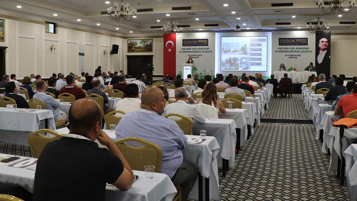 OSBÜK, Antalya’da bir otelde “OSB’lerin Yeşil Dönüşümü ve Sürdürülebilirlik Çalıştayı” düzenlendi. Çalıştaya 81 ildeki organize sanayi bölge müdürleri ve OSB’lerin ilgili personelleri katıldı. OSBÜK Başkan Yardımcısı Seyit Ardıç, Türkiye’nin sanayi üretiminin yüzde 45’ini gerçekleştiren organize sanayi bölgelerinin Türk sanayisine lokomotiflik yaptığını belirterek, OSB’lerin yeşil dönüşüm sürecinde Türkiye’ye örnek olacağını kaydetti.