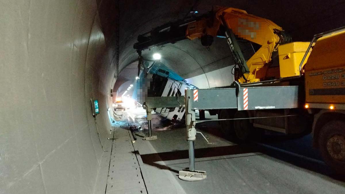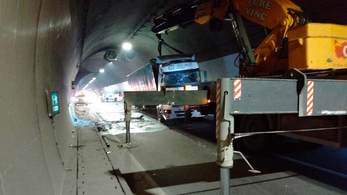 Osmangazi Tüneli’nde TIR devrildi; TIR’ın sürücüsü F.Y. yaralandı