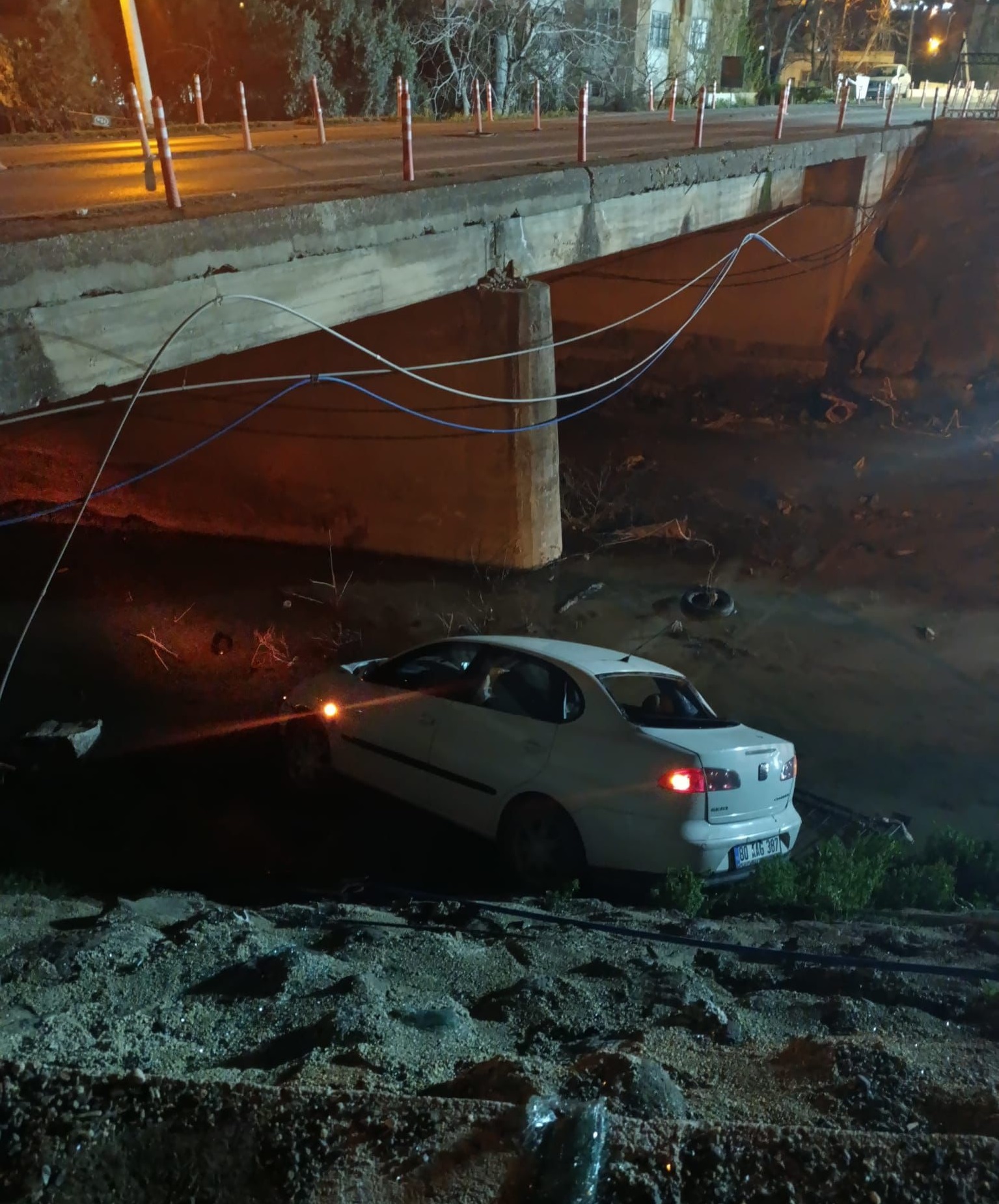 - 80 Aag 387 plakalı otomobil, kontrolden çıkarak köprüden düştü.