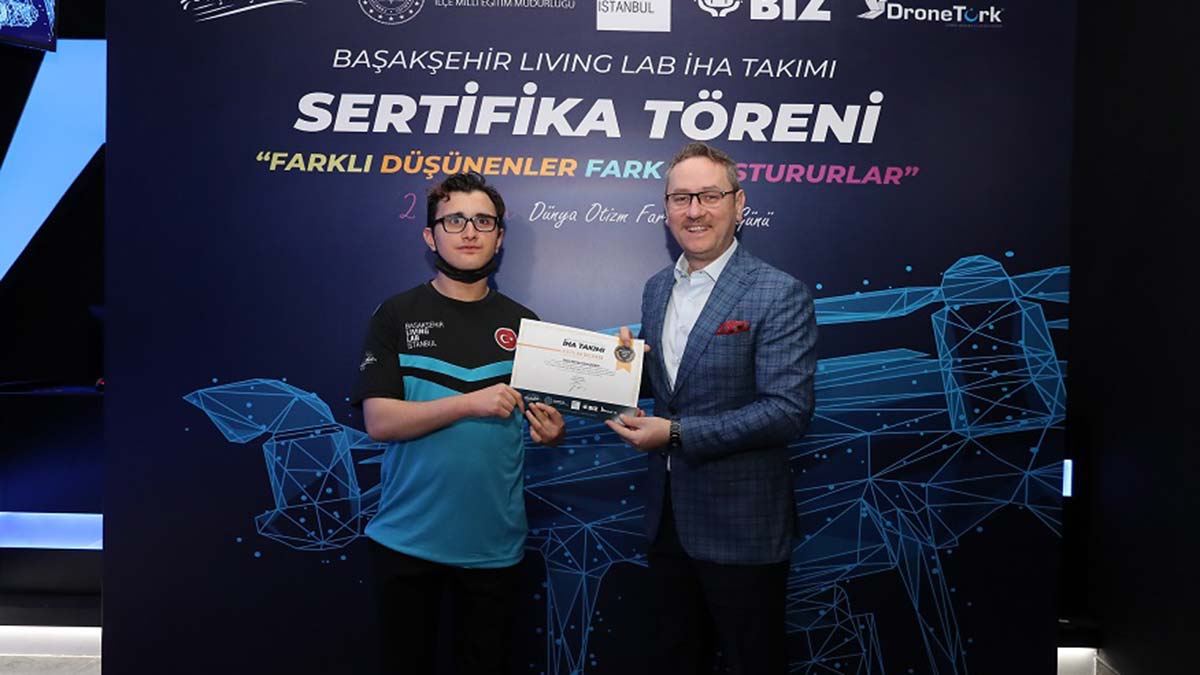 Başakşehir Belediyesi ve Başakşehir İlçe Milli Eğitim Müdürlüğü iş birliği ile hayata geçirilen Otizmli çocuklara drone eğitiminde, 10 günlük eğitimini tamamlayan çocukların sertifikaları Başakşehir Living Lab İnovasyon Teknoloji Merkezi’nde verildi. Drone eğitiminin Türkiye’de bir ilk olan raporlama çalışması ile otizmli çocukların, en az yaşıtları kadar öğrenme yetisine sahip olduğunun ortaya çıkarılması amacıyla verildiğini söyleyen Kurtoğlu “Eğitimler sırasında çocuklarımızın dikkat süreleri, motivasyonları ve öğrenme isteklerinin üst düzeye ulaştığını gözlemledik. Eğitimler sonunda şunu gördük; fırsat eşitliği sağlandığında, etkili eğitim yöntemleri kullanıldığında otizmli çocuklarımız, en az yaşıtları kadar hatta daha da başarılı olabiliyor” dedi.