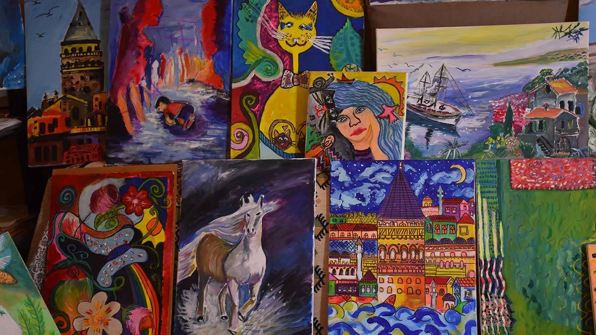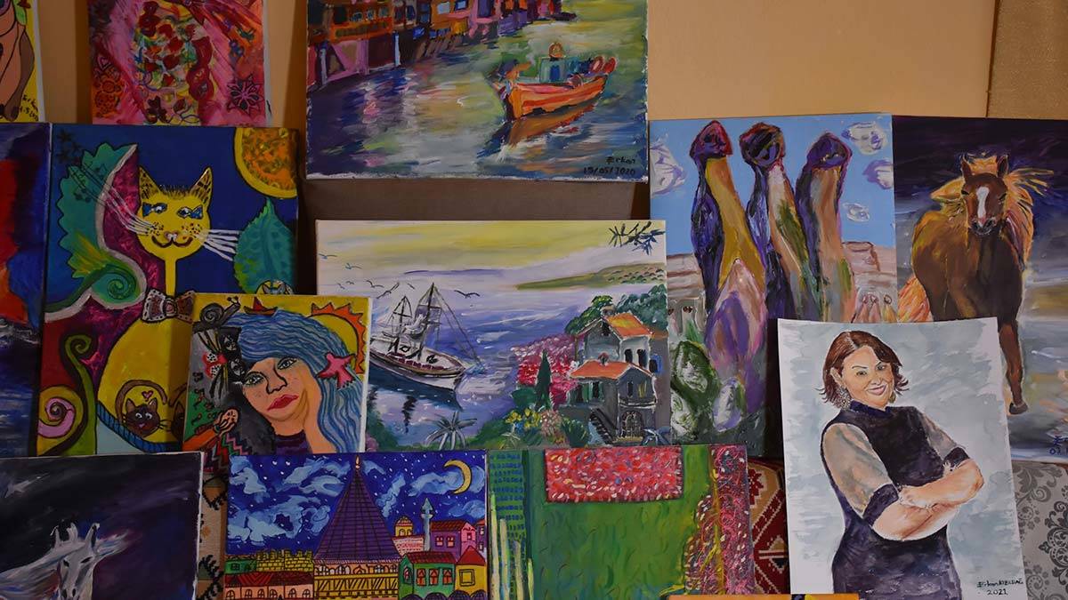 İzmir’de otizmli Erkan Kızıldağ (30), çeşitli malzemeler kullanarak yaptığı resimlerle 8 kişisel sergi açtı