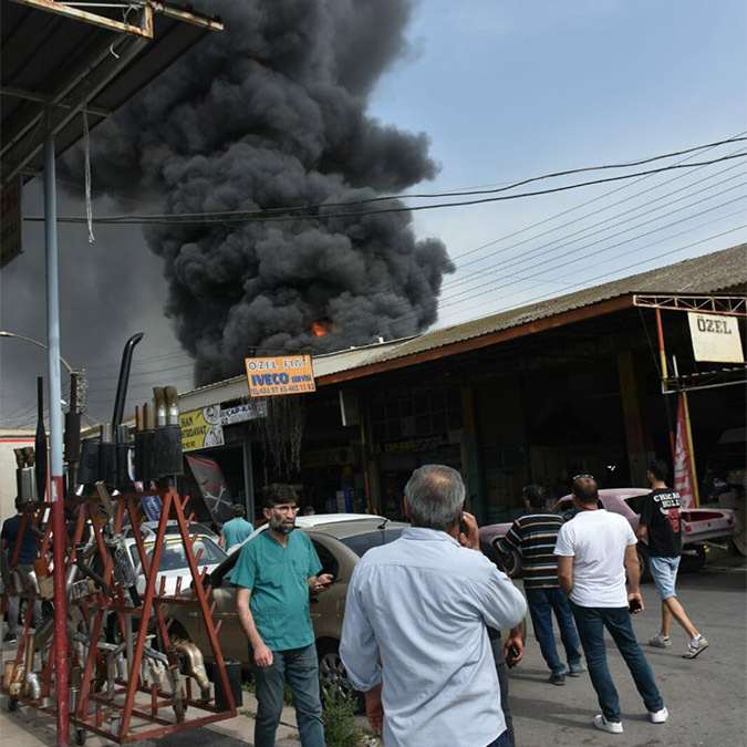 Bornova ilçesindeki 2’nci Sanayi Sitesi’nde otomobil yedek parça satışı yapılan iş yerinde, saat 16.00 sıralarında yangın çıktı. Alevler, bitişikteki 3 dükkana daha sıçradı. İhbar üzerine bölgeye itfaiye ve polis ekipleri sevk edildi. İtfaiye ekipleri yangına müdahale ederken, iş yerinden yükselen duman nedeniyle gökyüzü siyaha büründü. Bitişikteki diğer iş yerlerinin sahipleri ise alevlerin sıçraması ihtimali üzerine eşyalarını tahliye etmeye başladı. Yangının çıkış nedeni araştırılıyor.