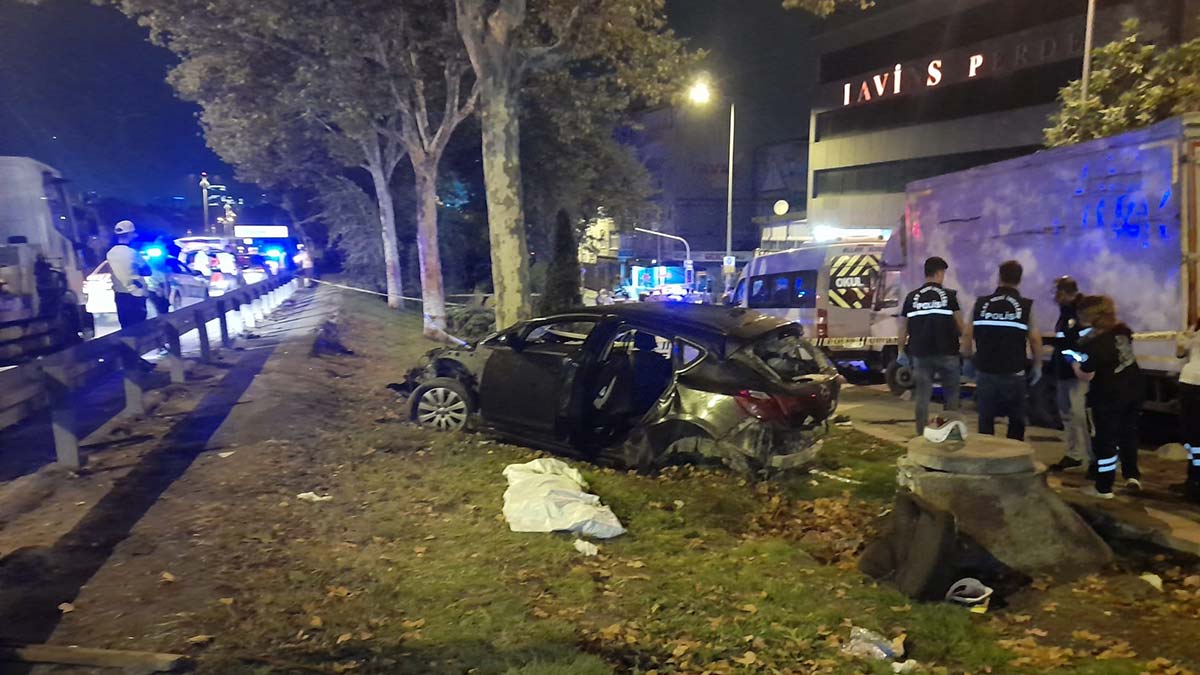 Esenler, TEM Bağlantı Yolu’nda seyir halinde bulunan otomobil ağaçlık alana uçtu. Ağaca çarparak tanınmaz hale gelen otomobilde bulunan 5 kişi hayatını kaybederken, 1 kişi ağır yaralandı.