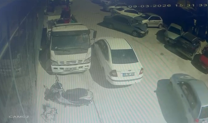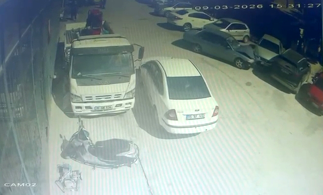 Diğer yandan kaza, çevredeki iş yerinin güvenlik kamerasına yansıdı. Görüntülerde; otomobilin önce park halindeki otomobile çarpması daha sonra geri giderek tamirhaneye dalması, olayı fark edenlerin kaçmaya çalışması yer aldı.