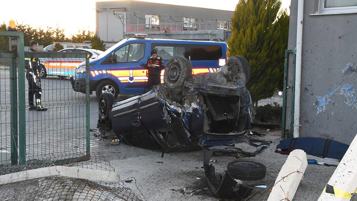 Tekirdağ’ın Çorlu ilçesinde, sürücünün kontrolünü yitirdiği otomobil Türkgücü Organize Sanayi Bölgesi arıtma tesisinin duvarına çarparak takla attı.