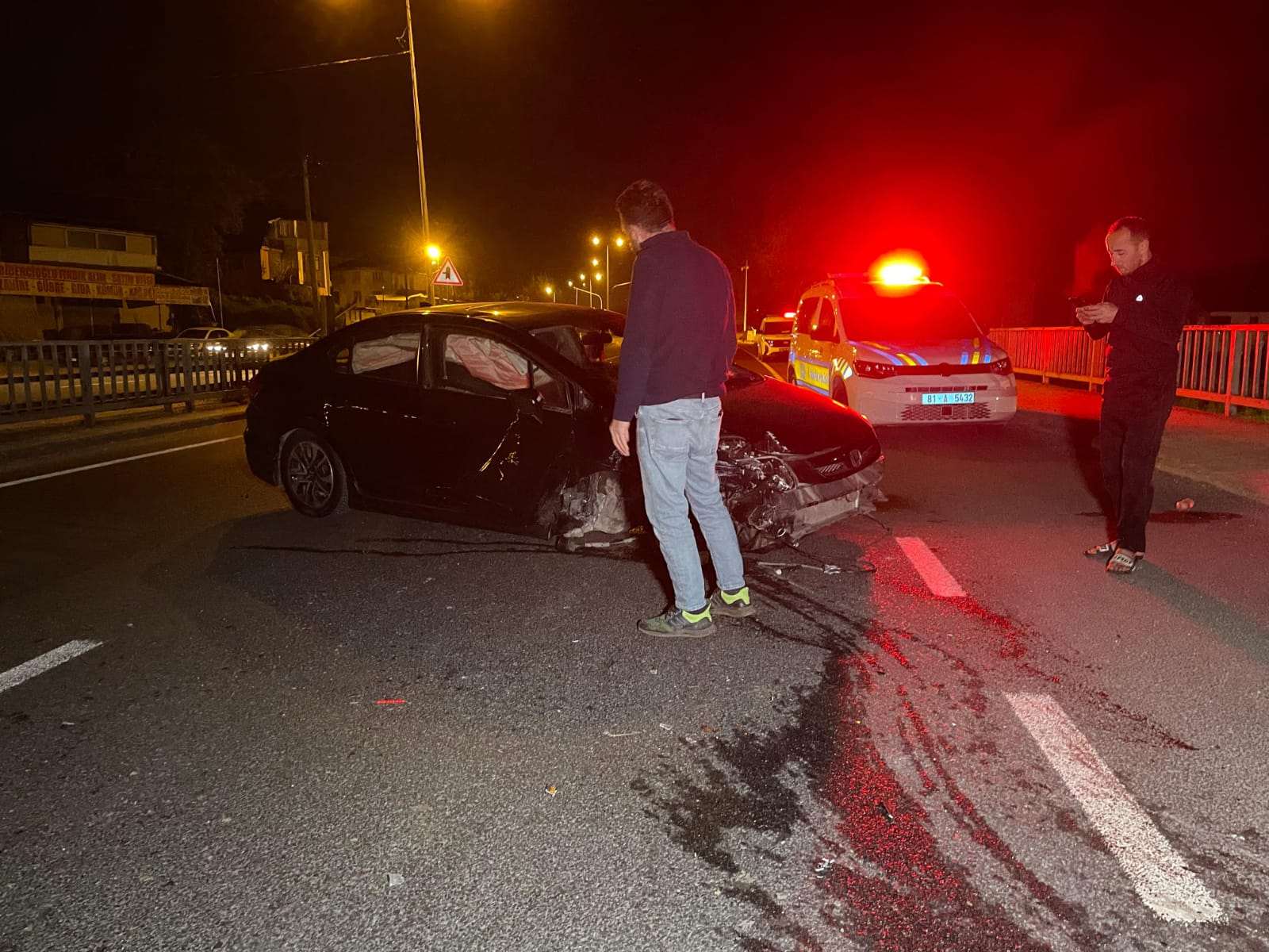 Düzce’de köprü üzerindeki korkuluklara çarpan otomobildeki 3 kişi yaralandı.