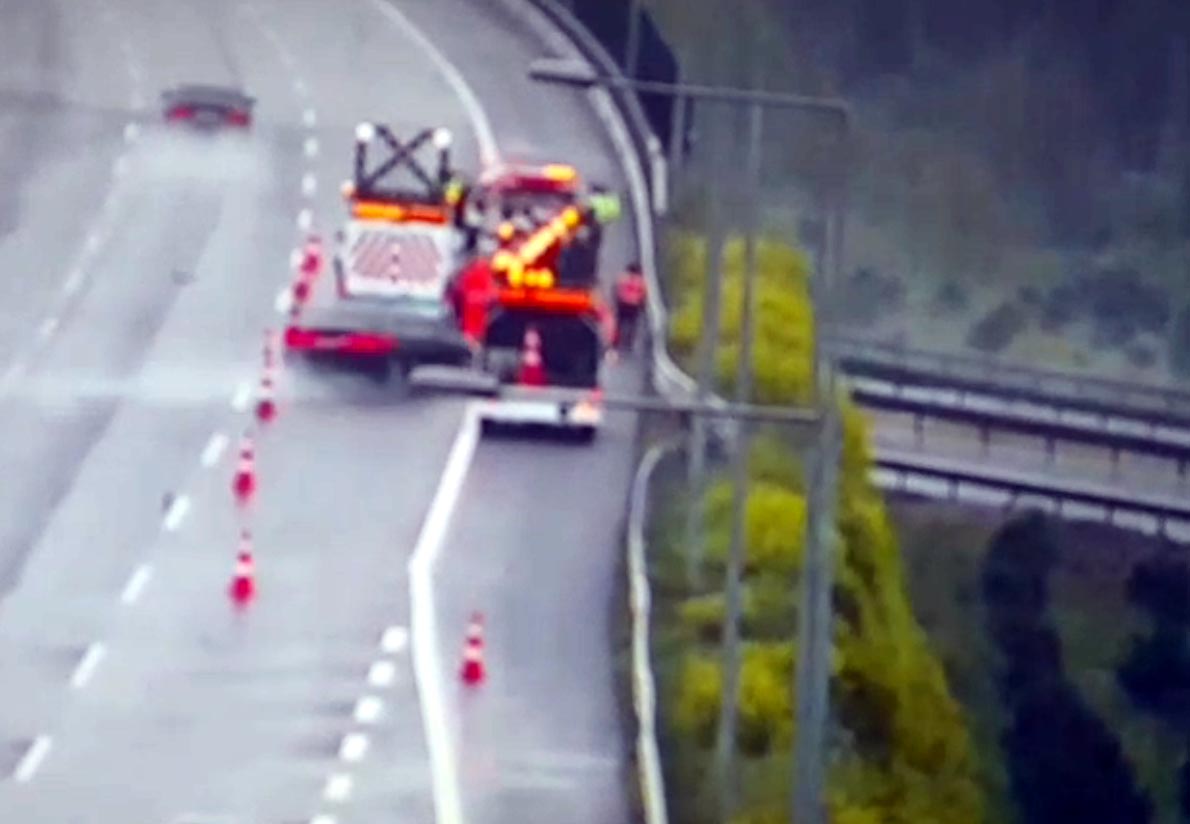 Sakarya’nın Akyazı ilçesinin Kuzey Marmara Otoyolu geçişinde sürücüsünün kontrolünü yitirdiği otomobil, Karayolları ekibine çarptı. 2 işçi ile otomobildeki 1 kişinin yaralandığı kaza, güvenlik kamerasına yansıdı.