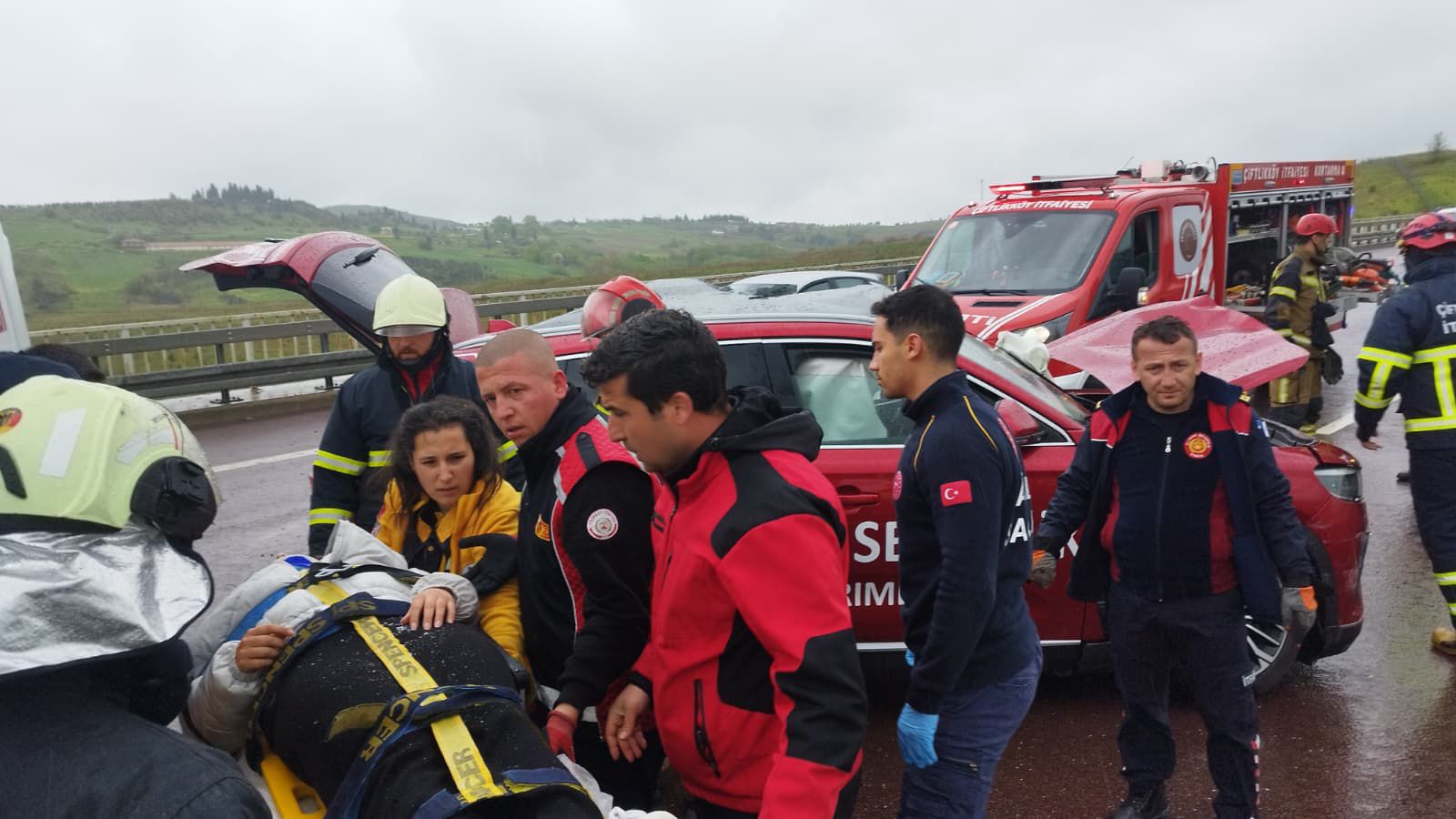 Otomobilde sıkışan Irmak Ö. ile Rüya Ö. itfaiye ekiplerinin müdahalesiyle çıkarıldı. Yaralılar, ambulanslarla kaldırıldıkları hastanede tedaviye alındı.