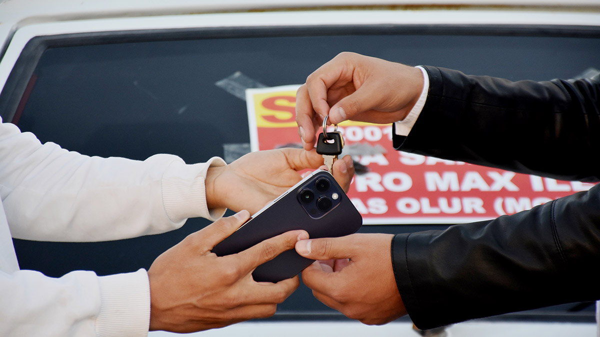 Otomobil sahibi Yasir Aksaç, aracını internetteki ilan sitesine koyduğunu ancak alıcı bulamadığını kaydederek, “Benim de bir telefona ihtiyacım vardı. Bizde neden bir telefon ile takas düşünmeyelim, dedik. ‘Telefon ile araç takas olur’ ilanını aracın arka camına yapıştırdık. Kardeşimiz de aradı ve alıcı oldu.