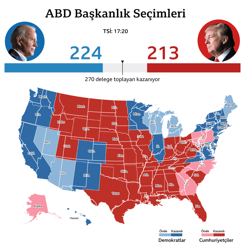 ABD’de başkanlık seçiminde yarış devam ediyor. ABD Başkanı Donald Trump’ın kampanya menajeri Bill Stepien, Trump’ın Wisconsin eyaleti için oyların tekrar sayılması konusunda istekte bulunacağını açıkladı.