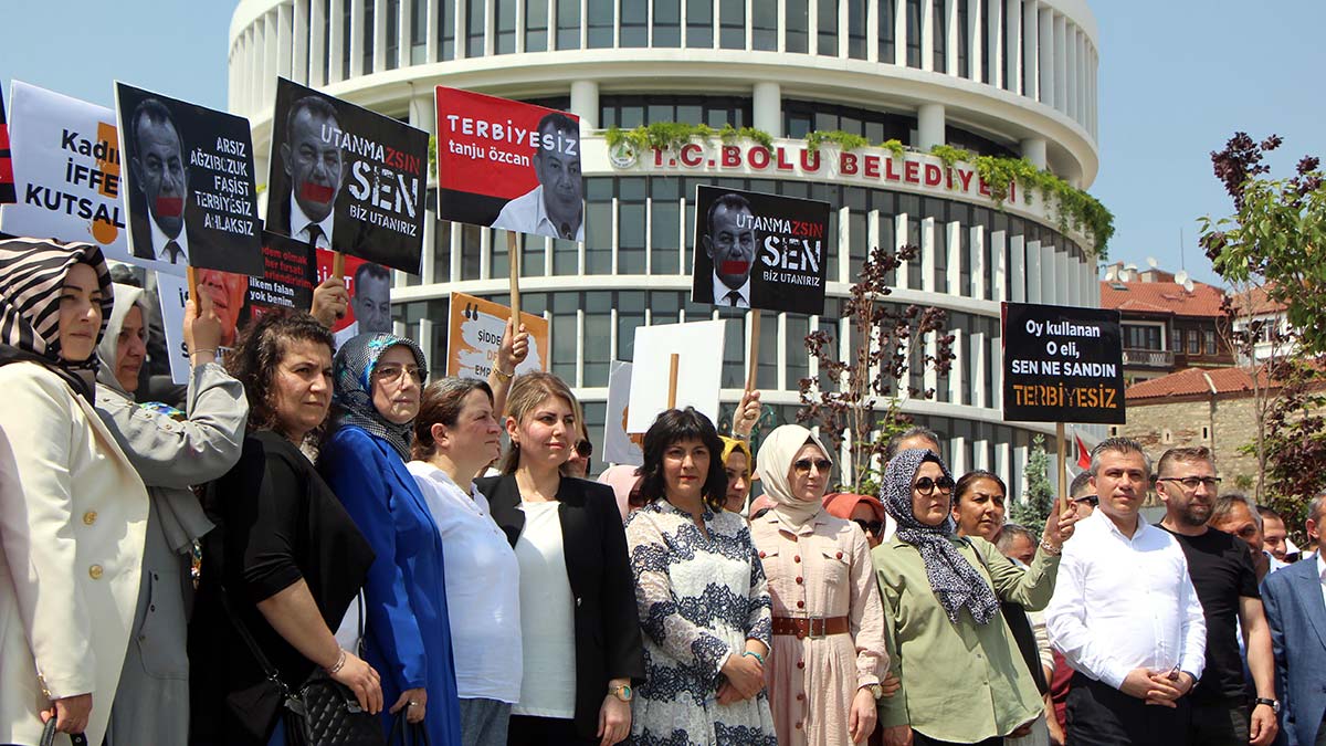 Bolu Belediye Başkanı CHP’li Tanju Özcan’ın kadın meclis üyesine sözleri protesto edildi. Belediye önünde toplanan yaklaşık 200 kadın, başkan Özcan’a tepki gösterdi.
