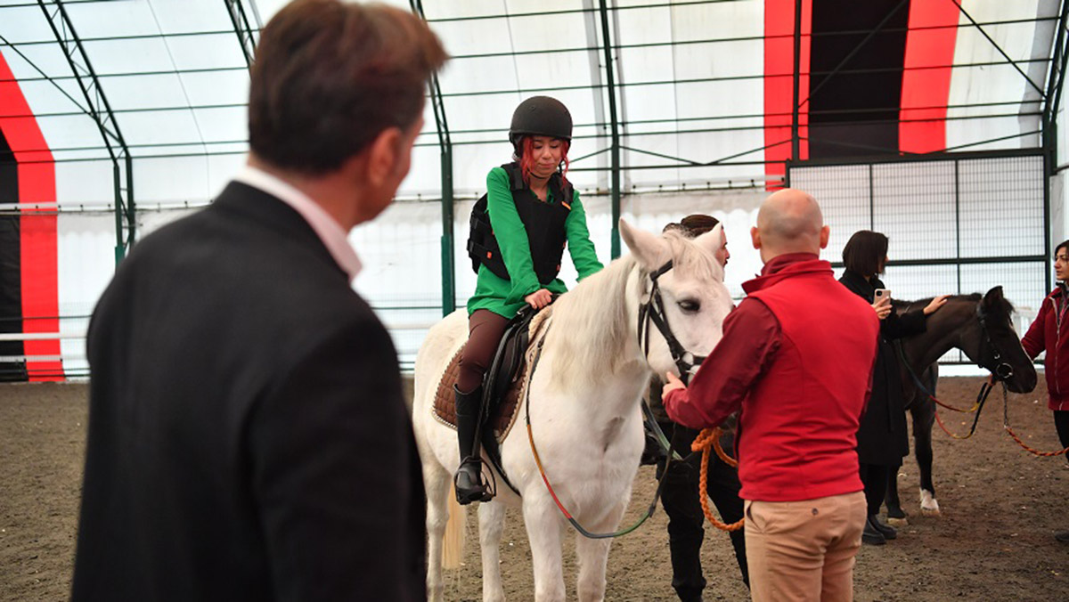 Türkiye Jokey Kulübü (TJK) Apranti Eğitim Merkezi Müdürü Yardımcısı klinik psikolog Bercis Merdanoğlu da “TJK tarafından sosyal sorumluluk projesi olarak başlatılan Atla Terapi Merkezleri Türkiye’nin 7 hipodromunda aktif bir şekilde hizmet veriyor. Bugüne kadar 500 bine yakın terapi hizmeti verildi. Engelli çocukları doktor raporuyla birlikte terapi merkezlerimize kabul ediyoruz” dedi.