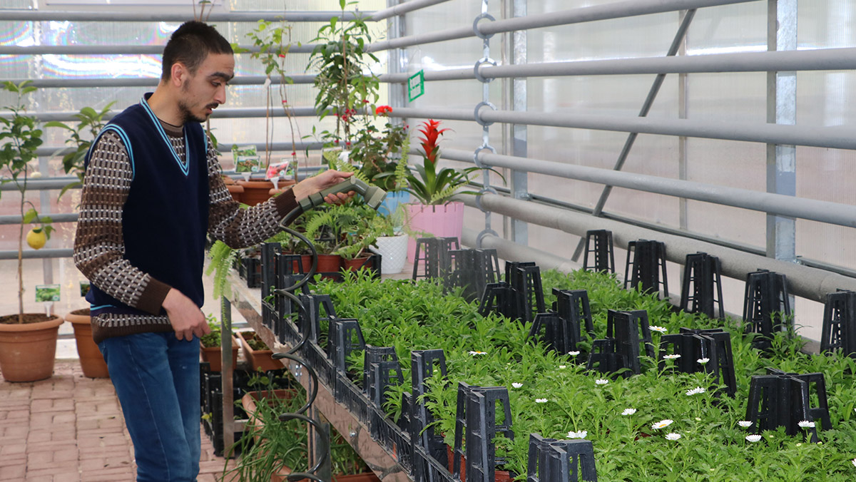 Afyonkarahisar’ın Sandıklı ilçesinde özel öğrenciler jeotermal serada çeşitli çiçeklerin yanında tıbbi aromatik bitkiler, kaktüs, sukulent ve tropikal meyve yetiştiriciliği yapıyor.