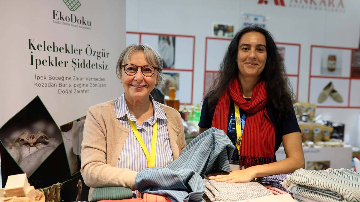 Sergilenen ürünler arasında el emeği ve özellikle kadın girişimcilerin ürettikleri dikkati çekti. Fuarda stant açan 35 kadının oluşturduğu Ekodoku Sürdürülebilir Yaşam Kooperatifi, geleneksel yöntemin tersine ipek ipliği üretiyor. Pupa içindeki ipek böceğini fırınlamadan ya da kaynar suda boğmadan, böceğin kendi gelişimini tamamlayıp pupayı terk etmesini bekleyerek ipliği elde eden kooperatif üyesi kadınlar, bu iplikten de yüzlerce metre kumaş dokuyor.